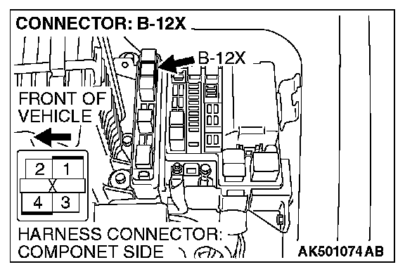 1. Disconnect the connector B-12X and measure at the harness side.
