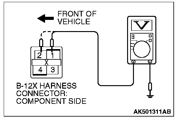 STEP 3. Measure the power supply voltage at MFI relay harness side connector B-12X.