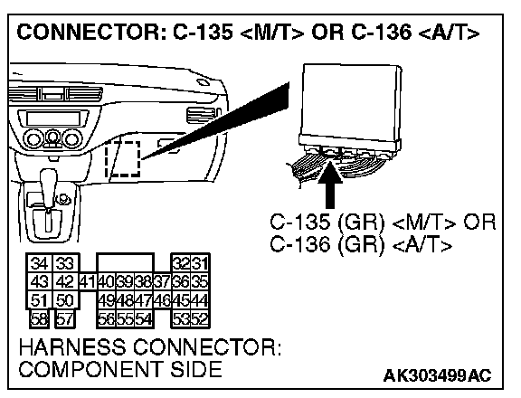 STEP 7. Check the continuity at ECM harness side connector C-135