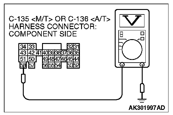 2. Measure the voltage between terminal No. 58 and ground.