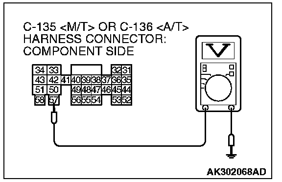2. Measure the voltage between terminal No. 57 and ground.