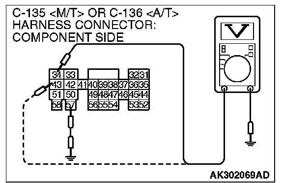 3. Measure the voltage between terminals (No. 34, No. 43) and ground.