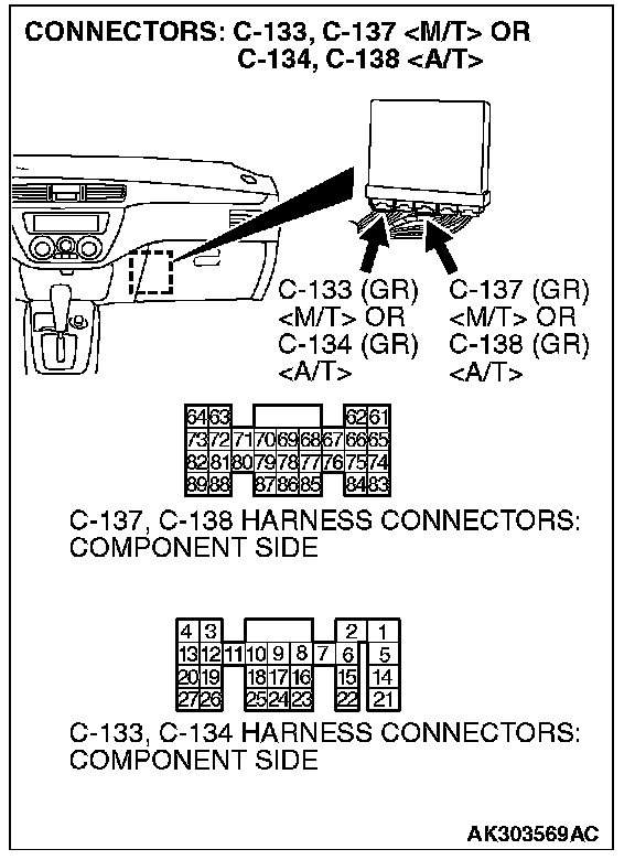 STEP 1. Check harness connector C-133, C-137 at ECM