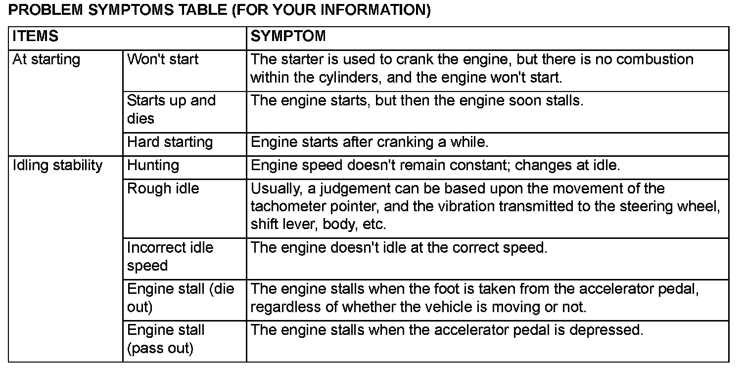 Problem Symptoms Table (For Your Information)