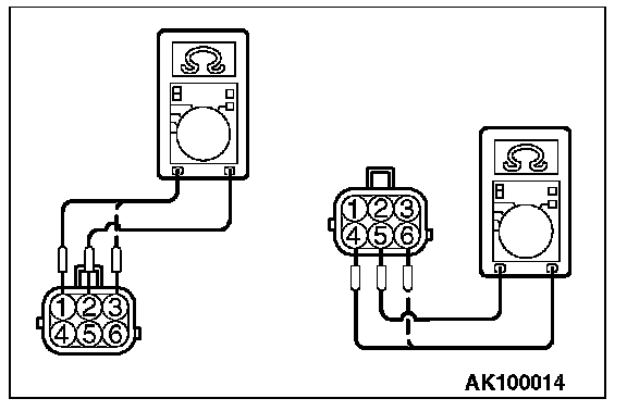 2. Measure the resistance between terminal No. 2 and either terminal No. 1 or terminal No. 3 of the connector at the EGR valve.