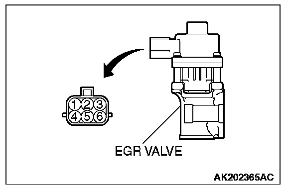 4. Measure the resistance between terminal No. 5 and either terminal No. 6 or terminal No. 4 of the connector at the EGR valve.