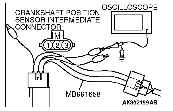 3. Disconnect the crankshaft position sensor intermediate connector and connect the test harness special tool (MB991658) between the separated connector.