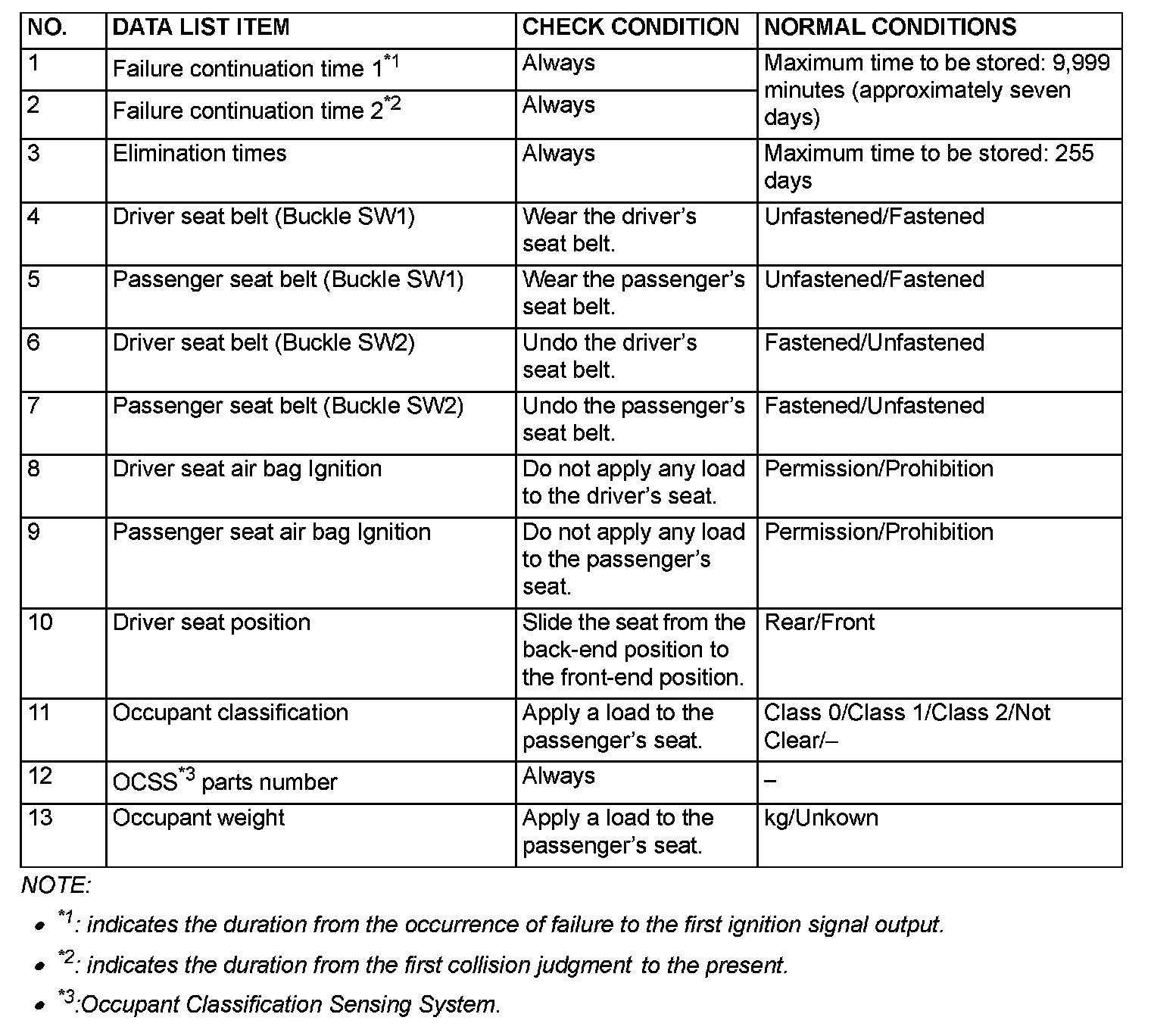 The given items can be read by the scan tool from the SRS-ECU input data.