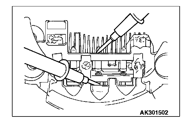3. Check for continuity of the three diodes by connecting an ohmmeter to both ends of each diode. If there is continuity between the directions, or if there is no continuity, the diode is damaged, so replace the rectifier.