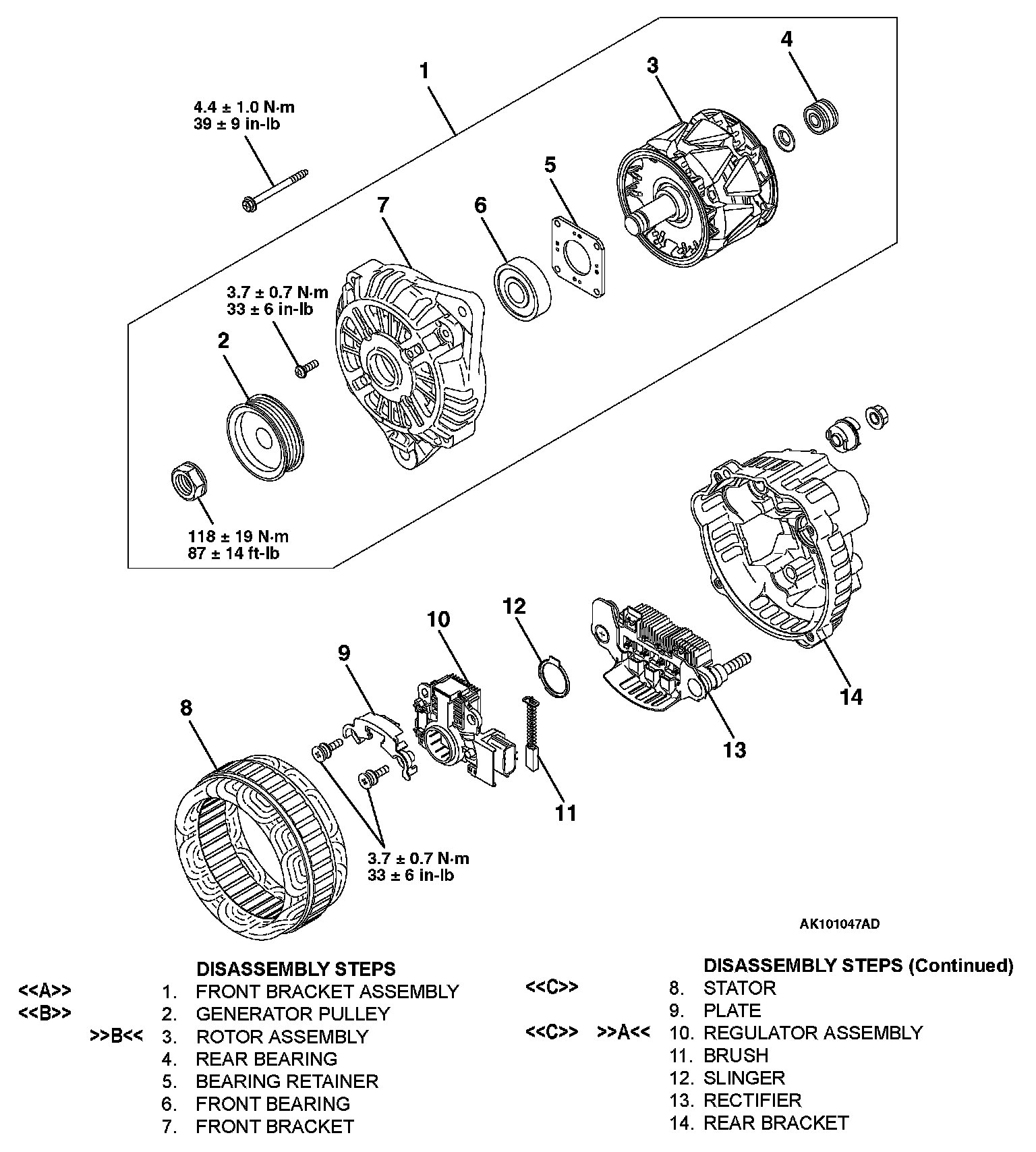 <> FRONT BRACKET ASSEMBLY REMOVAL