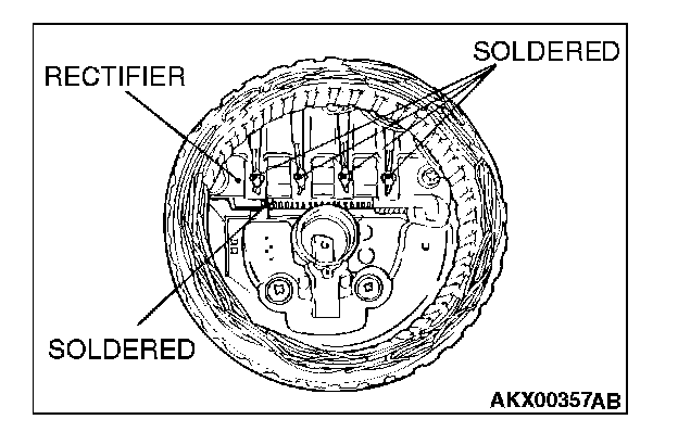 1. Use a soldering iron (180 to 250 W) to unsolder the stator. This work should be completed within approximately four seconds, to prevent heat from transferring to the diode.
