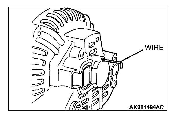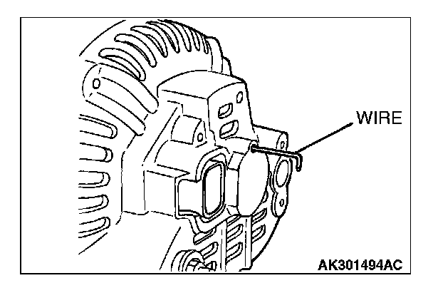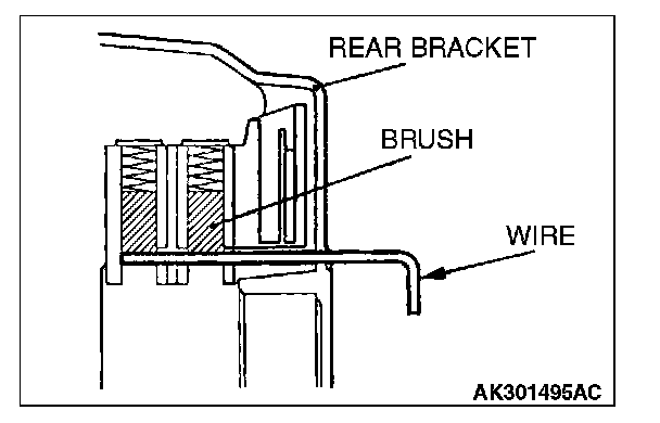 After installing the regulator assembly, insert a wire through the hole provided on the rear bracket while pressing down on the brush, and secure the brush.