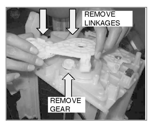 5. Remove the temperature control linkages and gear.