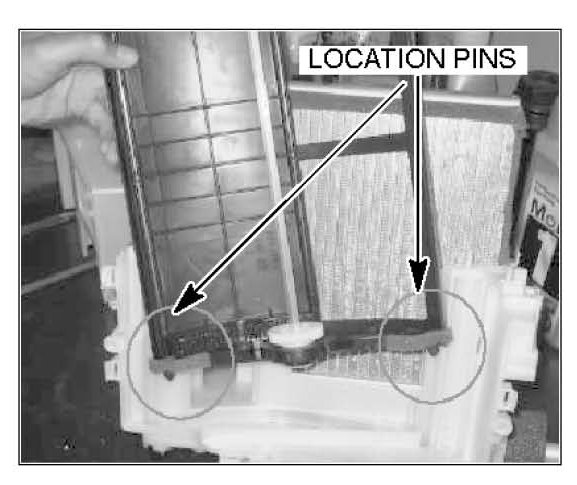 8. Install the new blend door (provided in the heater blend door kit listed in the PARTS INFORMATION section of this bulletin). Use the location pins on the door to align it properly.