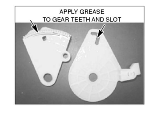 Apply a small amount of grease to the slot in the new door link, and to the gearteeth on the new lever.
