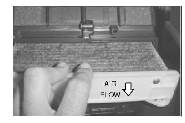 c. Install the filter with the air flow directional arrow pointing down.