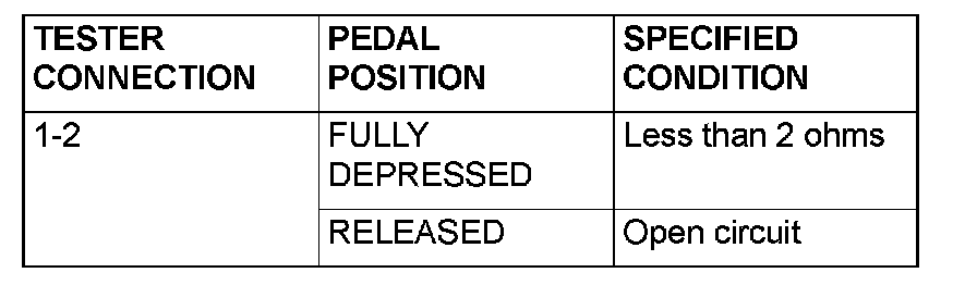 2. Connect an ohmmeter to the interlock switch connector, and then check for continuity when the clutch pedal is fully depressed and when it is released outward.