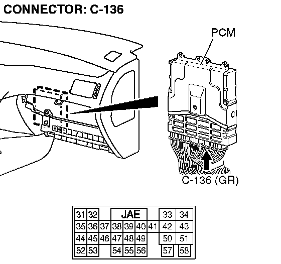 STEP 4. Check the harness for open circuit between PCM connector C-136 terminal 58 and battery.