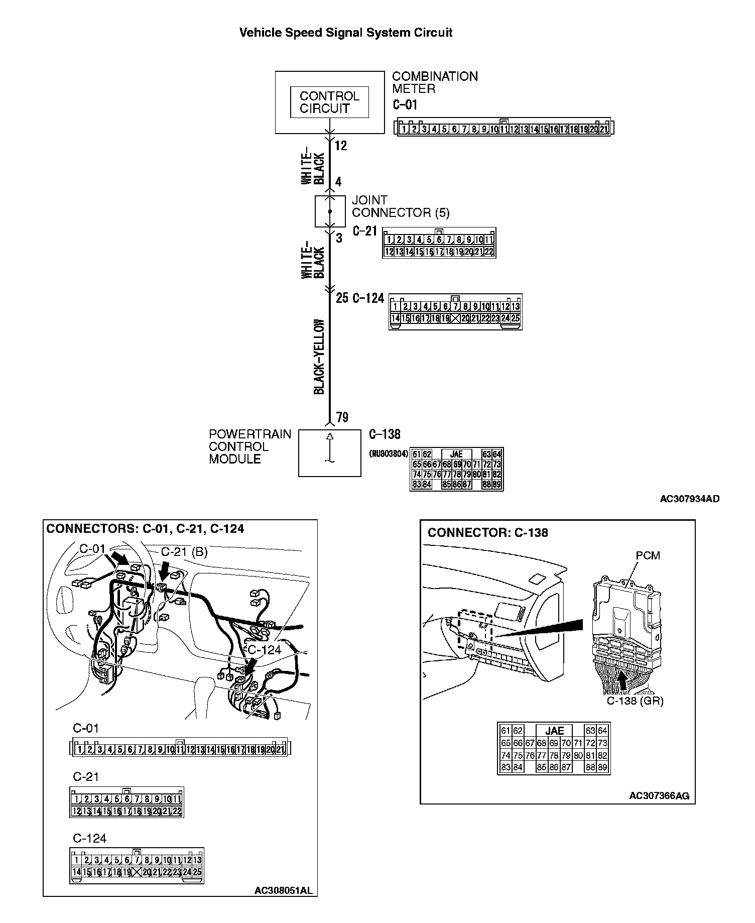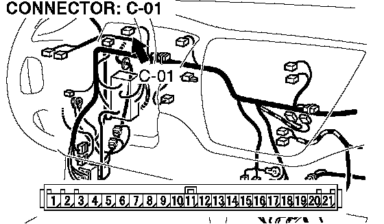 STEP 6. Check the harness for open circuit, short circuit to ground or damage between combination meter connector C-01 terminal 12 and PCM connector C-138 terminal 79.