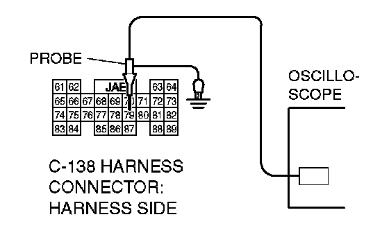 2) Connect an oscilloscope probe to PCM connector C-138 terminal 79 by backprobing.