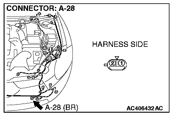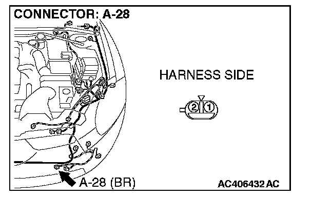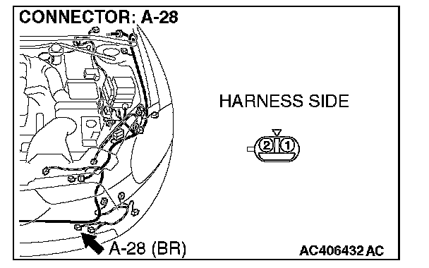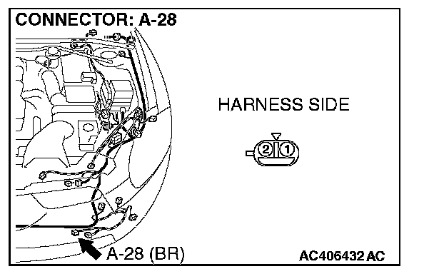 STEP 3. Check ambient air temperature sensor connector A-28 for loose, corroded or damaged terminals, or terminals pushed back in the connector.
