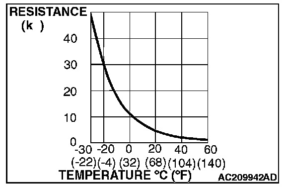 2. When the resistance between the sensor terminals is measured under two or more temperature conditions, the resistance should approximately satisfy the illustrated values.