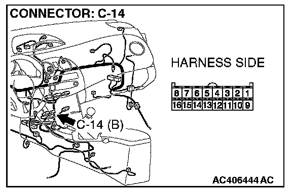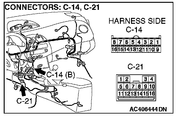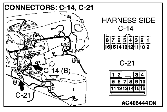 STEP 5. Check A/C-ECU connector C-14 for loose, corroded or damaged terminals, or terminals pushed back in the connector.