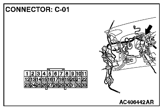 NOTE: Also check intermediate connector C-21 and joint connector C-01 for loose, corroded, or damaged terminals, or terminals pushed back in the connector. If intermediate connector C-21 and joint connector C-01 is damaged, repair or replace the connector as described in Harness Connector Inspection.