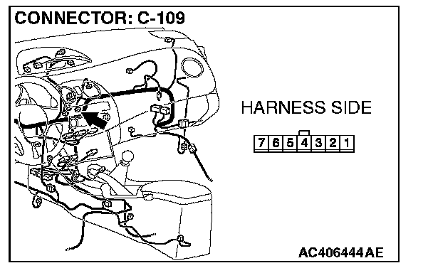 STEP 3. Check air mixing damper control motor and potentiometer connector C-109 for loose, corroded or damaged terminals, or terminals pushed back in the connector.