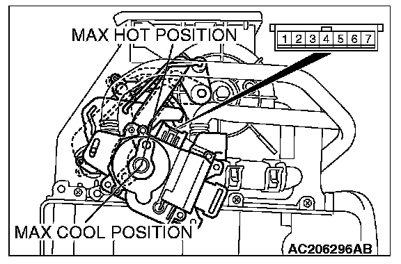 1. Operate the air mixing damper control motor as described in the table.