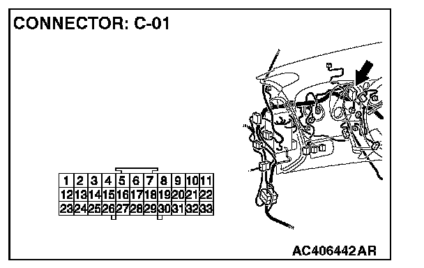NOTE: Also check joint connector C-01 for loose, corroded, or damaged terminals, or terminals pushed back in the connector. If joint connector C-01 is damaged, repair or replace the connector as described in Harness Connector Inspection.