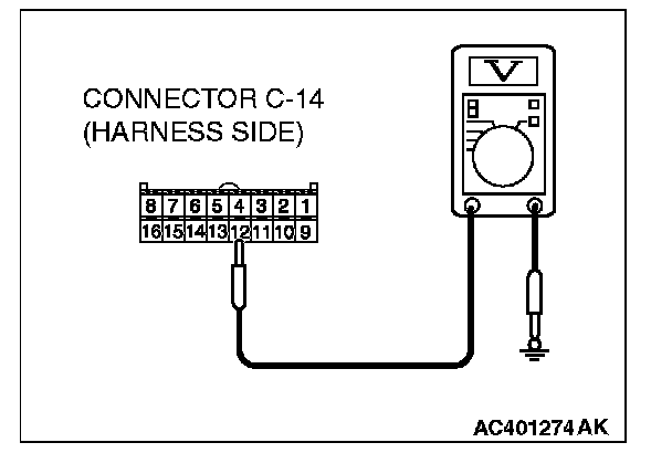 STEP 8. Measure the voltage at A/C-ECU connector C-14.