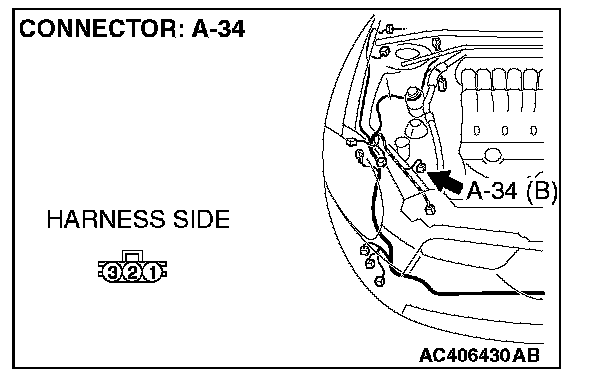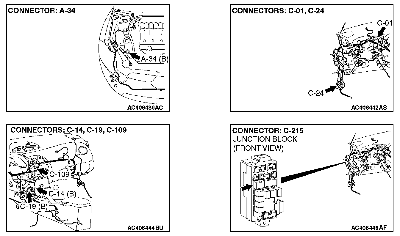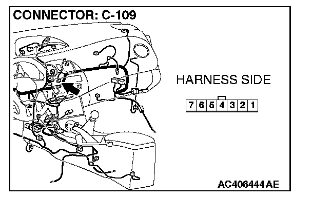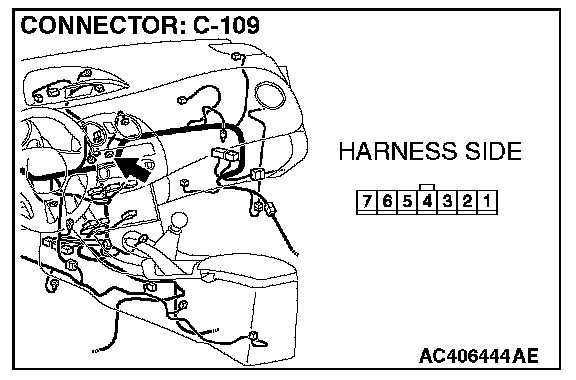 STEP 2. Check air mixing damper control motor and potentiometer connector C-109 and A/C pressure sensor connector A-34 for loose, corroded or damaged terminals, or terminals pushed back in the connector.