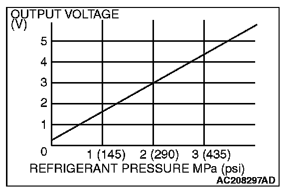 4. At this time, check to see that the voltage of A/C pressure sensor terminal No. 2 reflects the specifications of the figure.