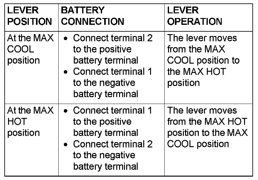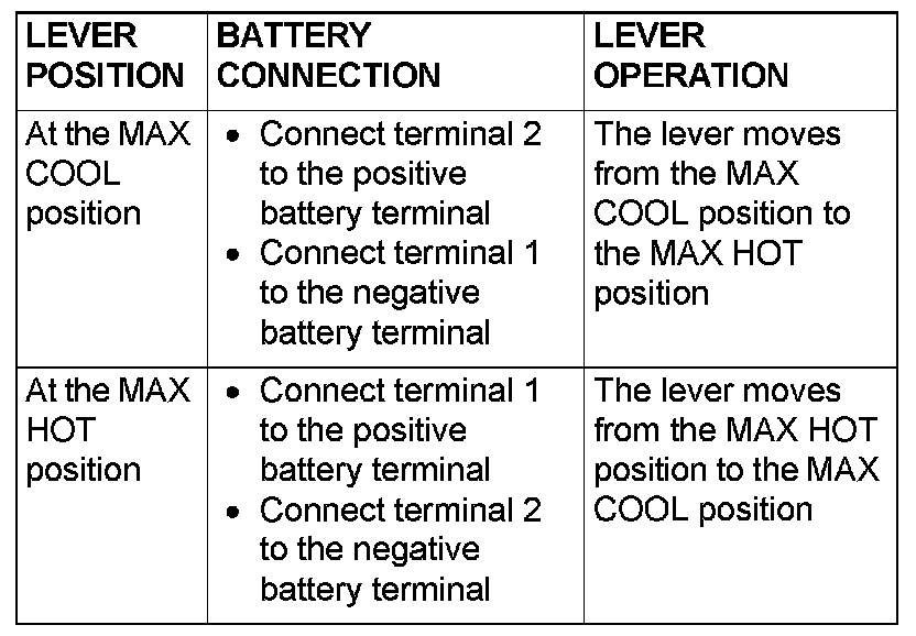 CAUTION: Do not apply battery voltage when the damper is in the MAX COOL or MAX HOT position.
