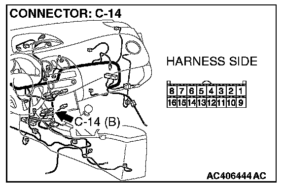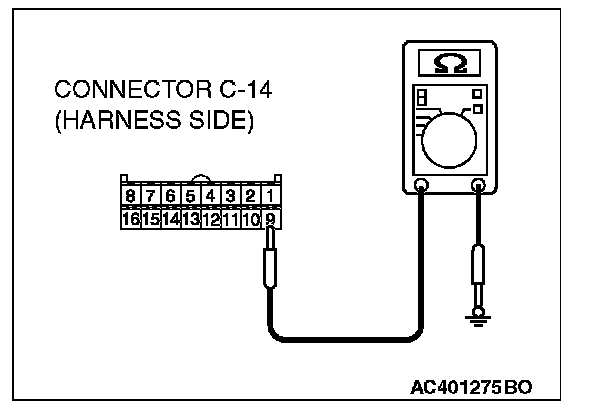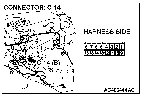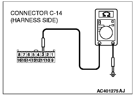 STEP 8. Measure the resistance at A/C-ECU connector C-14.