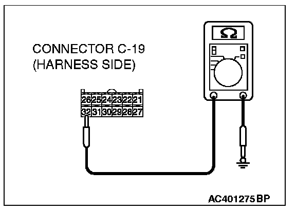 STEP 22. Measure the resistance at A/C-ECU connector C-19.
