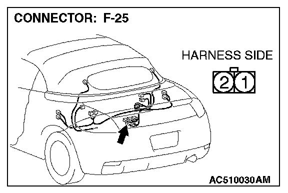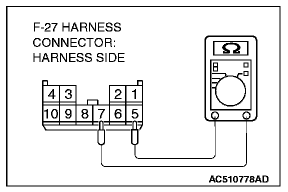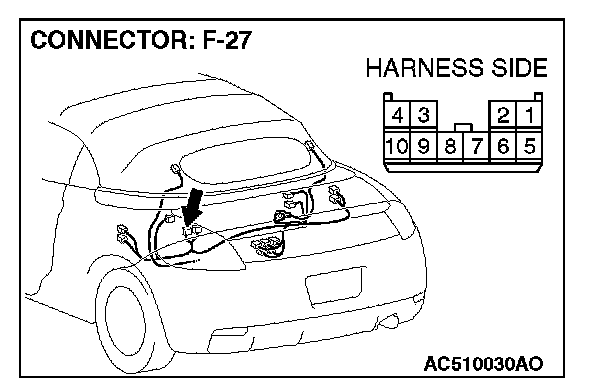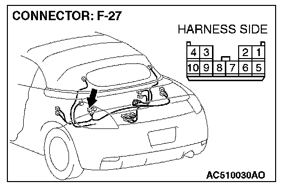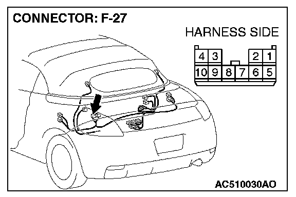 1. Disconnect convertible top control module connector F-27, and measure at the wiring harness side.
