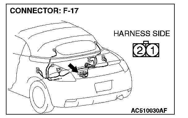STEP 9. Check solenoid valve (tonneau latch cylinder) connector F-17 for loose, corroded or damaged terminals, or terminals pushed back in the connector.