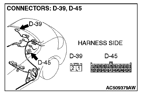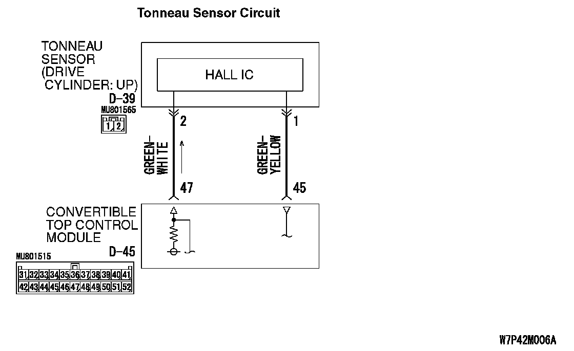 STEP 4. Check the harness between convertible top control module connector D-45 (terminal 47, 45) and Tonneau sensor connector D-39 (terminal 2, 1).