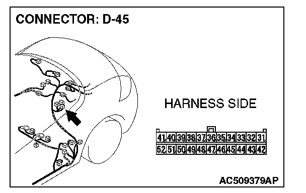 STEP 3. Check convertible top control module connector D-45 for loose, corroded or damaged terminals, or terminals pushed back in the connector.