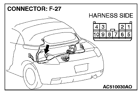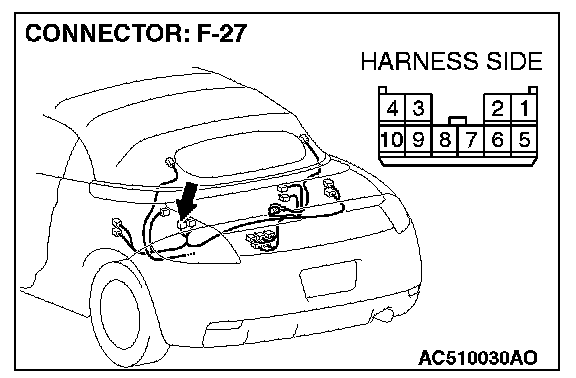 1. Disconnect convertible top control module connector F-27, and measure at the wiring harness side.
