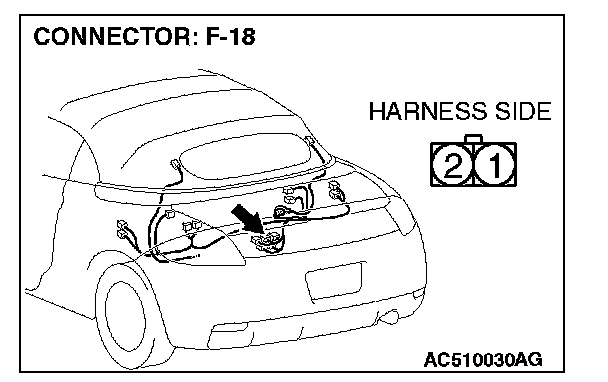 STEP 4. Check solenoid valve (tonneau drive cylinder) connector F-18 for loose, corroded or damaged terminals, or terminals pushed back in the connector.