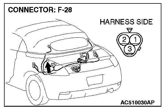 STEP 3. Check tonneau latch switch connector F-28 for loose, corroded or damaged terminals, or terminals pushed back in the connector.