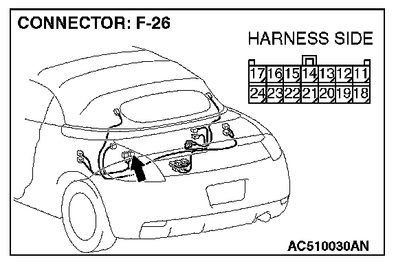 STEP 5. Check convertible top control module connector F-26 for loose, corroded or damaged terminals, or terminals pushed back in the connector.