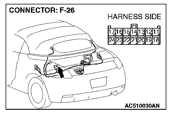 STEP 5. Check convertible top control module connector F-26 for loose, corroded or damaged terminals, or terminals pushed back in the connector.