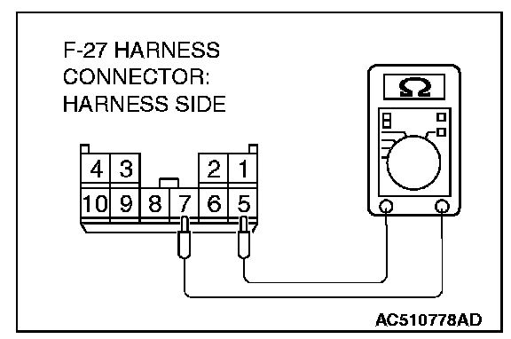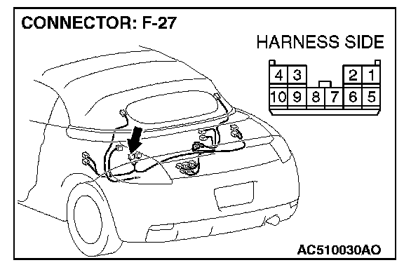 1. Disconnect convertible top control module connector F-27, and measure at the wiring harness side.