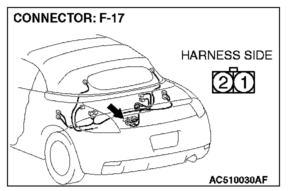STEP 4. Check solenoid valve (tonneau latch cylinder) connector F-17 for loose, corroded or damaged terminals, or terminals pushed back in the connector.