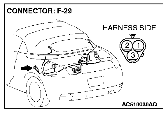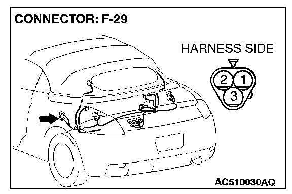 1. Disconnect convertible top position switch connector F-29, and measure at the wiring harness side.