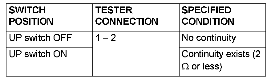 Check the continuity at the convertible top position switch (up).